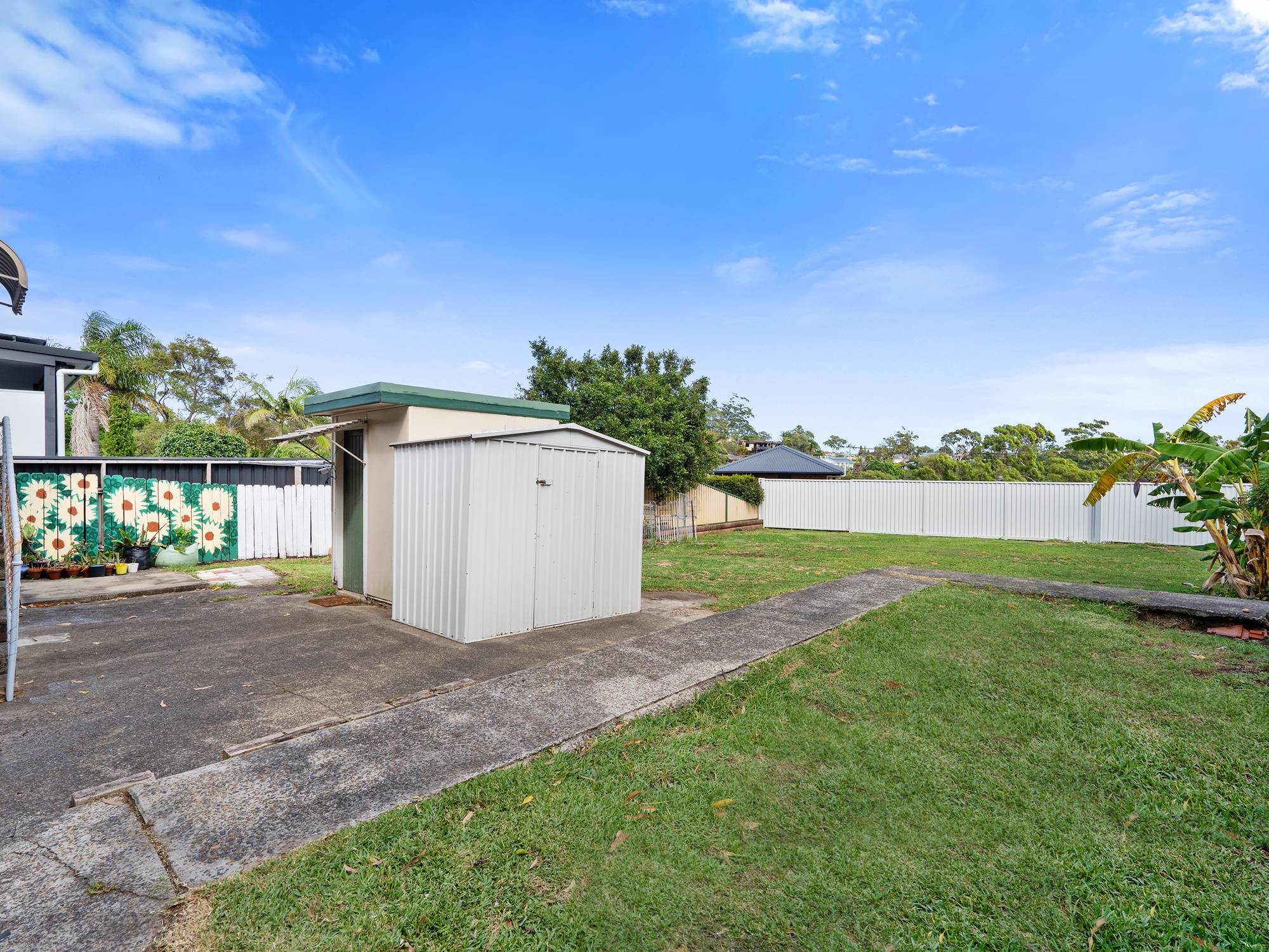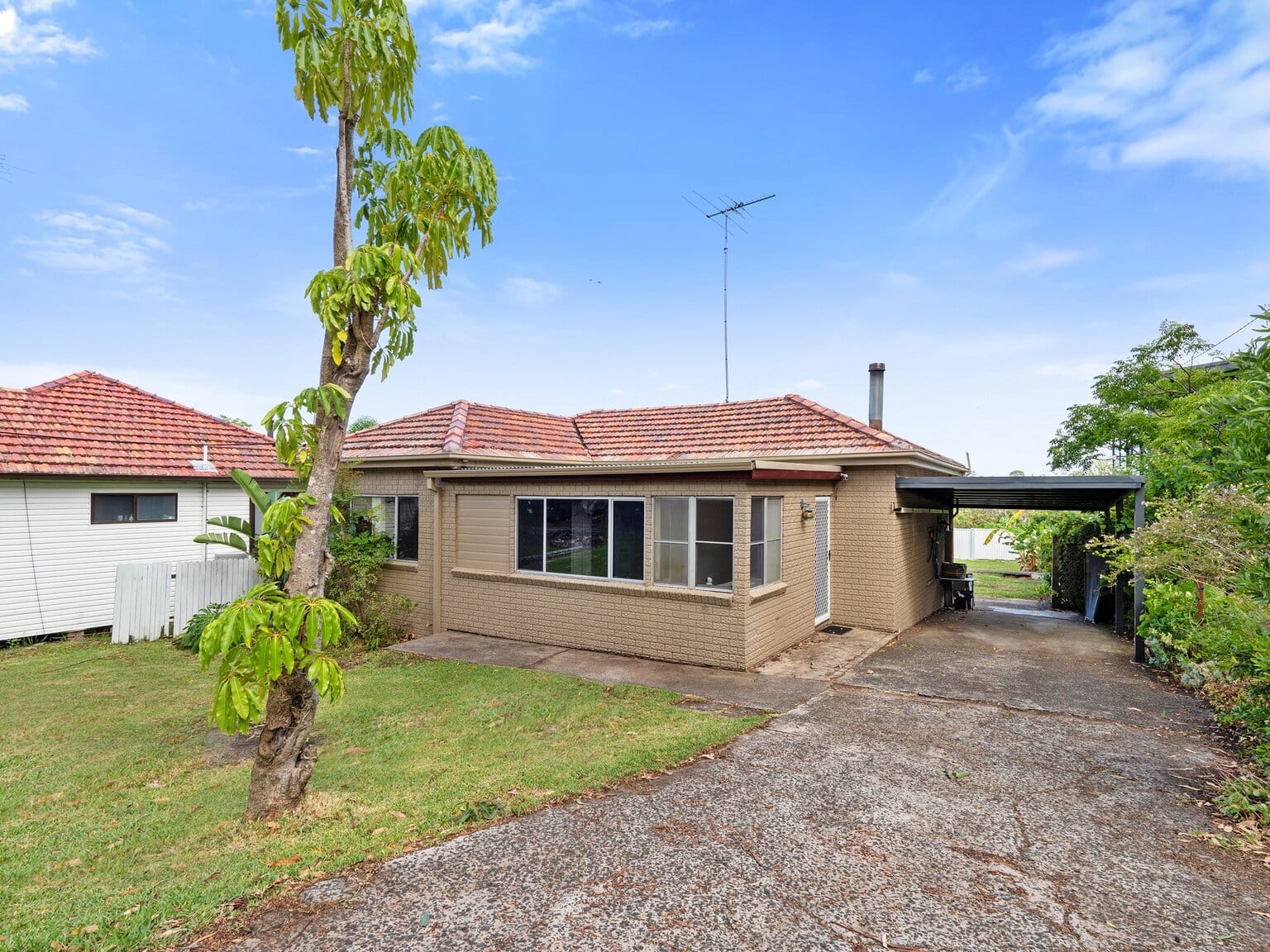 – Generous drive-through carport with side-access potential