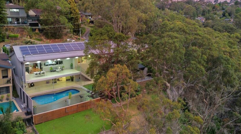 – Upon entering, you are immediately drawn to the scenic, uninterrupted views, beautifully framed by commercial-grade windows and doors, all enhanced by spotted gum flooring and soaring cathedral-style ceilings. Ducted air conditioning ensures comfort throughout, while the design creates a stunning sense of space and grandeur.