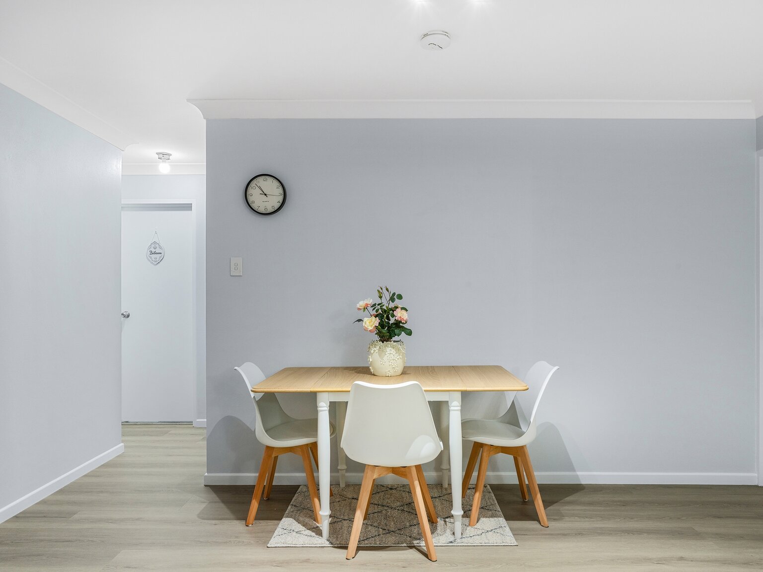 – Bright open-plan lounge and dining area featuring a charming private balcony, enhanced by quality flooring and soothing neutral tones.