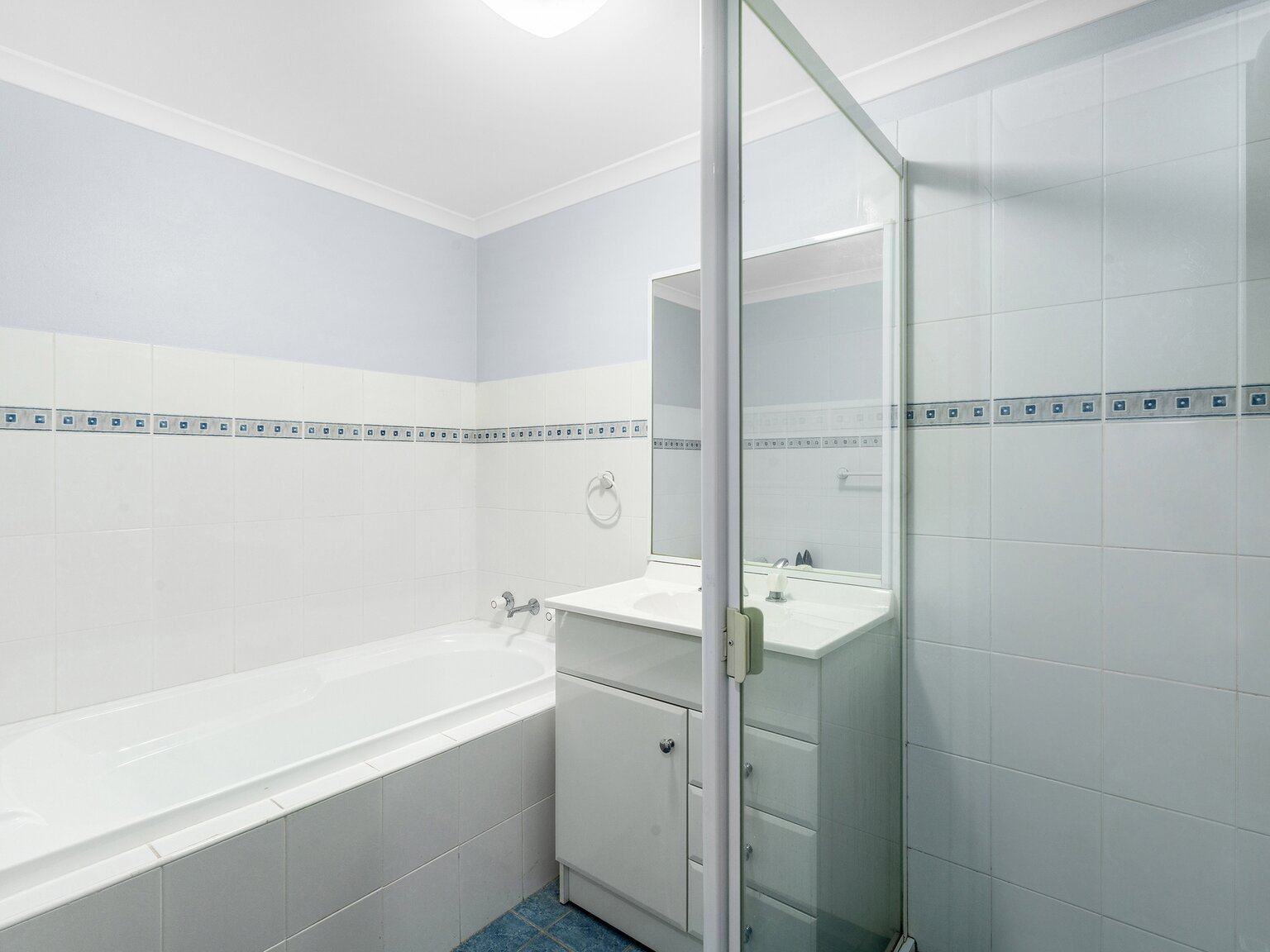 – Well-maintained, bright bathroom featuring a bath, separate shower and separate toilet.